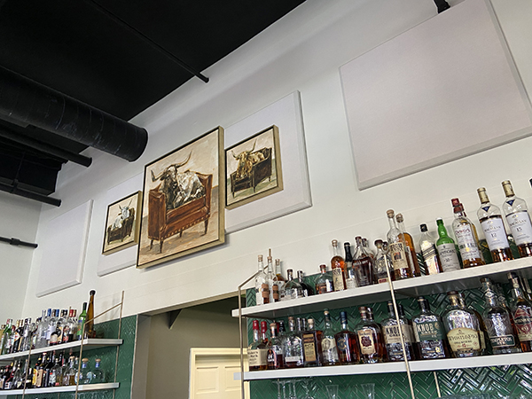 We also got the chance to help Asheville Proper, making sure that the colors and design flowed with their lovely aesthetic. With a large wall full of windows and hard surfaces all around, the challenge was to bring down the echo and vibrating ambient noise while preserving a lively atmosphere. They have a specific look, with mouth-watering aged meats curing everywhere and a modern atmosphere, but the simple look of black and white worked best with their existing aesthetic. It was a combination of design and blending in to accomplish this, drawing the eye when neccesary and hiding in plain sight as the design needed. The result seamlessly flows with their look and greatly improved their sound quality. Win win!